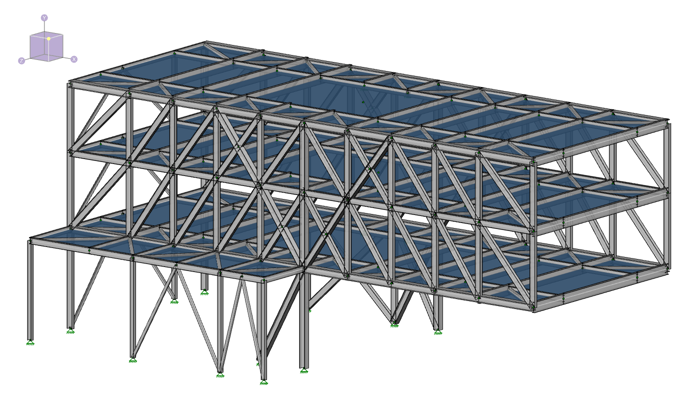 To analyze the complex portions of the structure, including the cantilever, engineers first utilized RISA-2D to analyze the trusses from gravity loading. Next, a more comprehensive RISA-3D model was built in order to validate results, allow for the analysis of out-of-plane loading conditions and to finalize the design of the steel truss members. Overall, RISA-3D gave the engineers the ability to quickly and accurately analyze the structure while also allowing for visual validation of deflections and localized stress points.
