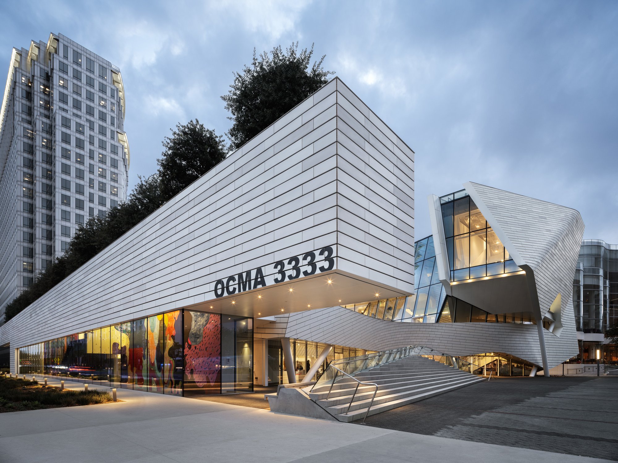 The Orange County Museum of Art’s new home is a 53,000 sq ft building featuring exhibition galleries, educational programing, and areas for public gathering. The museum has become another integral piece for the larger campus of the Segerstrom Center for the Arts. The Orange County Museum of Art centers around a large multi story glass atrium.The buildings exterior form is sculptural by design in order to create a progression of complex architectural forms to create a flexible gallery space. The building is a concrete and steel structure which the architect intentionally exposes in moments throughout the building.