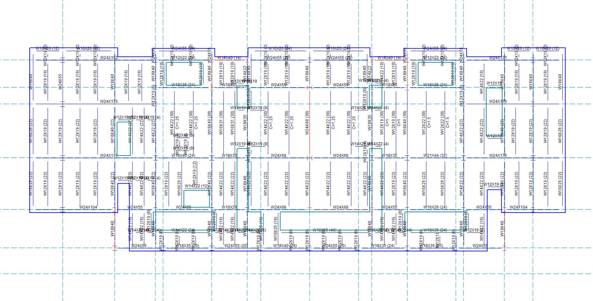 With all the challenges of the project, engineers at Olsson relied heavily on the full RISA Suite to achieve a structural design that fit the strict aesthetic and architectural demands. RISAFloor & RISA-3D were utilized to model the main three-story structure and design the composite floors and main lateral systems. Integration with RISAFoundation and RISAConnection were also utilized to design the buildings shallow concrete foundations and steel connections respectively. Finally, the steel fins that make up the “scrim wall” were modeled separately in RISA-3D so that they could be independently analyzed for the anticipated wind load on the exterior of the structure.