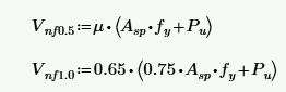 The program calculates the capacity, Fv, from Equation 8-20 shown above. The program also checks to verify we do not exceed the Fv max value from Equations 8-21 and 8-22 (or interpolation between them) that is reported in the Detail Report.